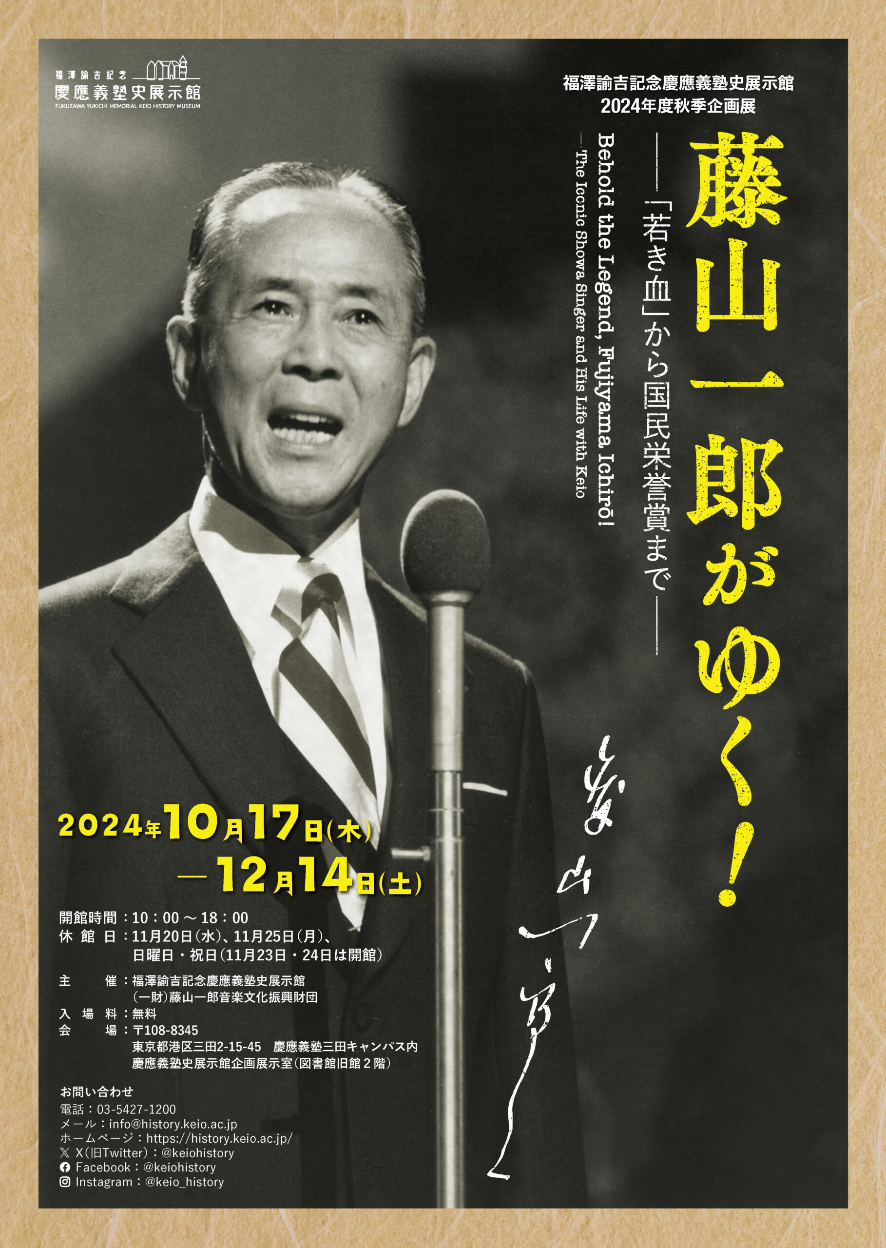 2024年度秋季企画展 藤山一郎がゆく!―「若き血」から国民栄誉賞まで―